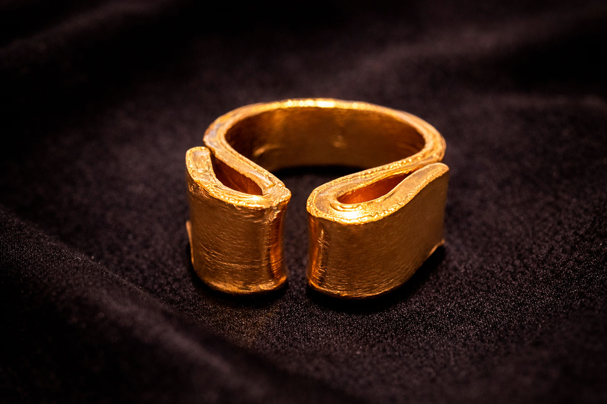 Esculpido en metal con textura orgánica y acabado cálido, LÍMITE no adorna: afirma.