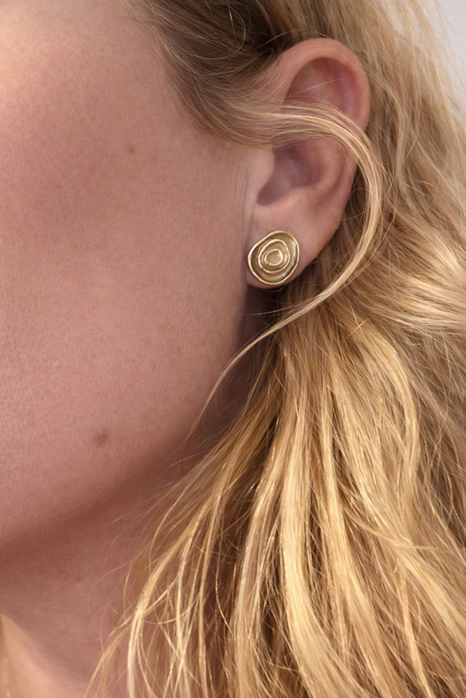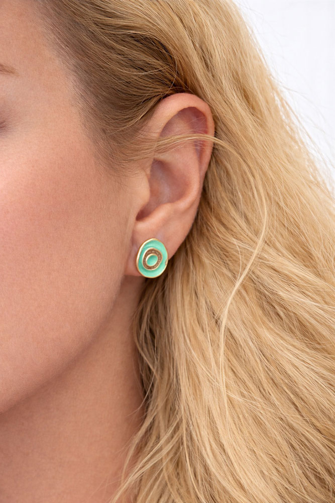 Los pendientes de esta colección están inspirados en la fuerza del aire. Elaborados artesanalmente en bronce amarillo, además de en este tono original también puedes obtenerlos en rojo, azul celeste y verde menta.