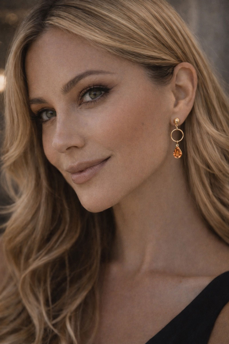 Su color rosa- anaranjado y la transparencia de sus cristales iluminan el rostro. ¿Con el pelo suelto? ¿Mejor recogido? Mi consejo es que fluyas, según te sientas ese día. Te doy mi palabra: con ellos el éxito está asegurado. ¡Y es que no pueden favorecer más!